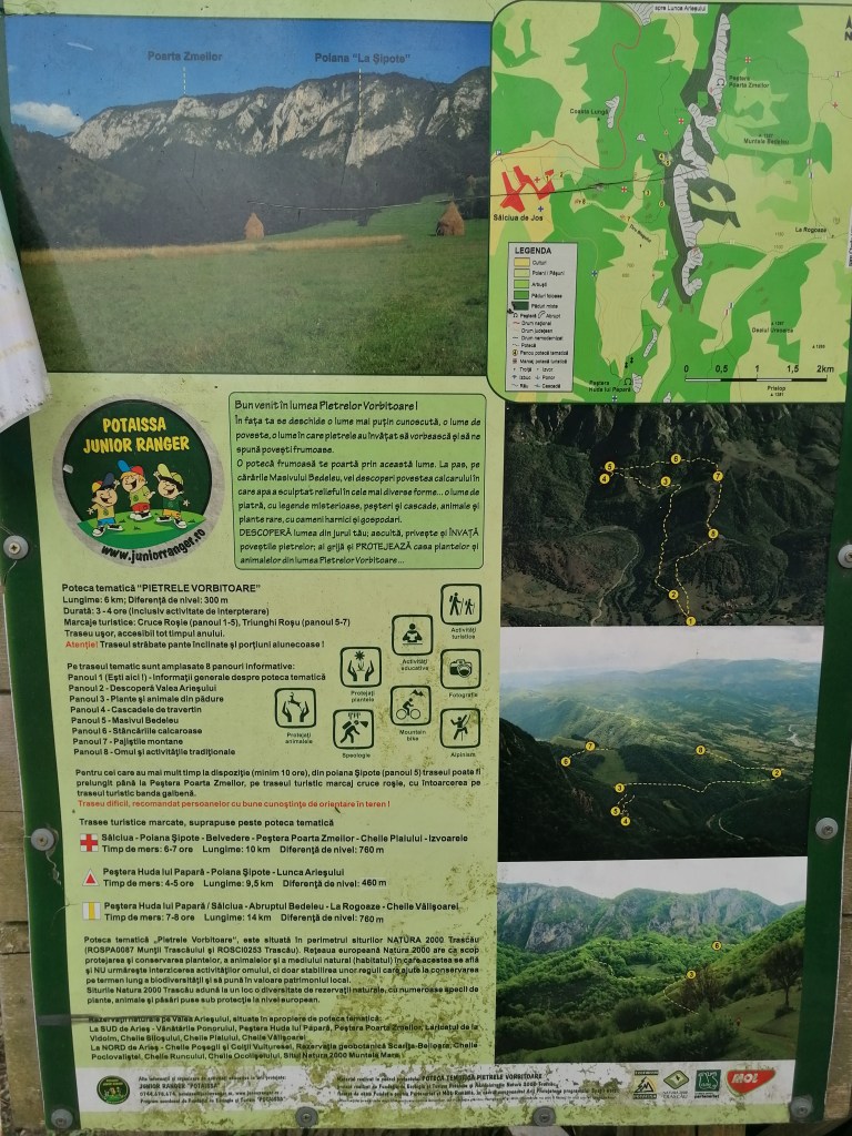 Masina am lasat-o la inceputul Potecii Tematice Pietrele Graitoare din Salciua de Jos, intr-o parcare privata (este un numar de telefon la care am sunat pentru a vedea cum se plateste parcarea).